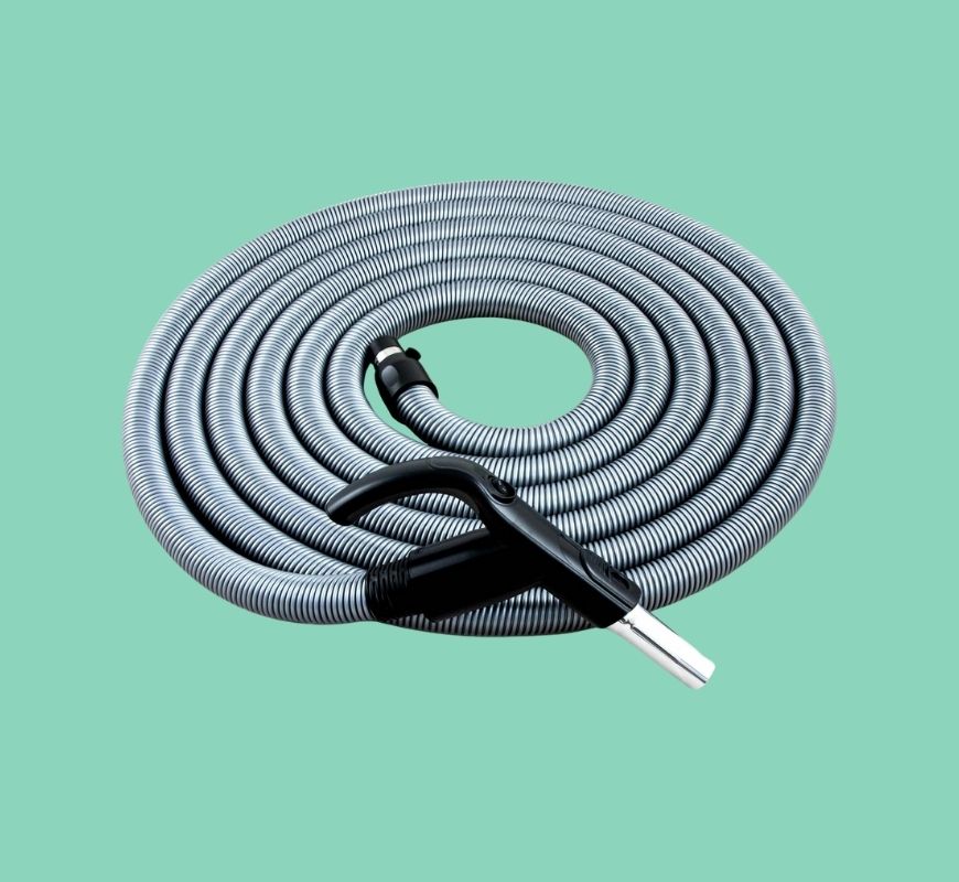 Handgriff Der Griff vom Komfort Schlauch hat einen Ein-Ausschalter. So kann man den Saugvorgang, von jedem Punkt Ihrer Wohnung aus per Knopfdruck starten und beenden. Der Handgriff des Saugschlauches ist um 360° drehbar was die Anwendung sehr komfortabel macht. Auf den Handgriff des Zentralstaubsauger Schlauches können Teleskoprohre, Staubsaugeraufsätze, oder Bürsten direkt aufgesteckt werden. Über einen drehbaren Regler kann die Saugleistung - durch Öffnen des Reglers - variabel angepasst werden. Durch diesen Regler wird bei Bedarf Luft zugeführt was den Druck entsprechend reduziert. Der Außendurchmesser des verchromten Rohrendes am Handgriff hat 32 mm. Saugdosenanschluss Die Anschlusshülse ist mit einem Metallring versehen. Beim einstecken des Schlauches in die Saugdose wird der Saugvorgang nicht automatisch gestartet. Erst durch Einschalten des Saugschlauches über den Ein-Ausschalter am Handgriff wird der Saugvorgang gestartet. Der Zentralstaubsauger Schlauch ist an alle Saugdosen anschließbar, die eine Standardsaugdosenöffnung mit 38 mm haben, und über zwei Kontakte an der Innenseite der Saugdosenöffnung verfügen. Ausnahme: Mit Saugdosen der Marken Allaway und Thomas ist unser Saugschlauch nicht kompatibel. Der Außendurchmesser vom Saugdosenanschluss hat 37 mm. Schlauch Der Schlauch ist mit Niederspannungskabeln ausgerüstet, flexibel, tritt- und knickfest. Der Komfort Schlauch hat einen sehr guten Luftdurchfluss.