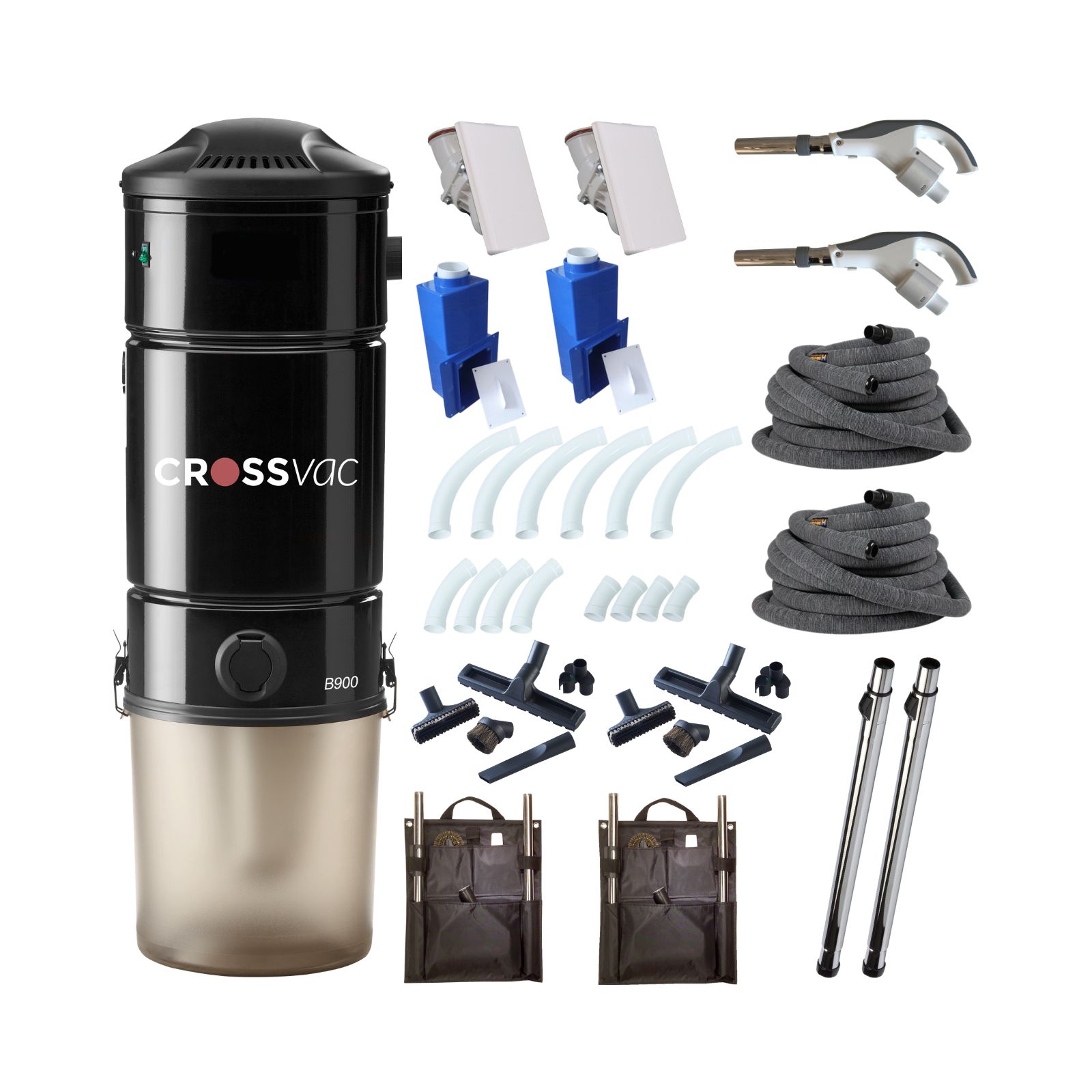 Zentralstaubsauger Set B900 Hide-a-Hose mit Staubsaugeranlage B900 und 2x Hide-a-Hose Schlaucheinzug sowie dem notwendigen Installationsmaterial, Saugzubehör & Co.